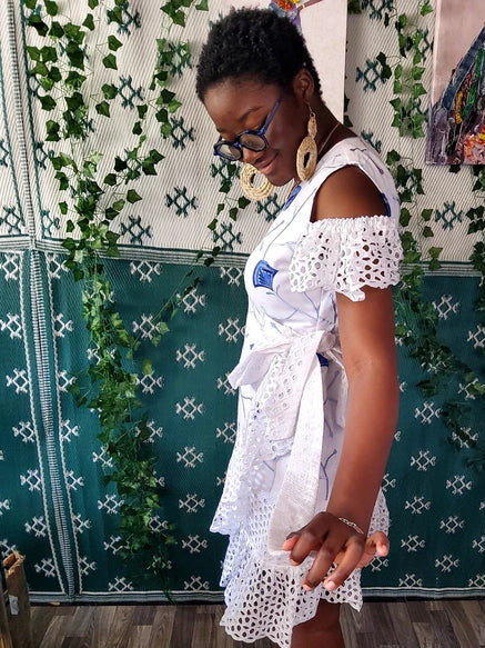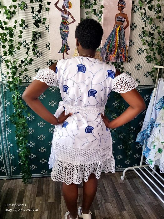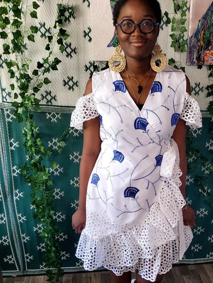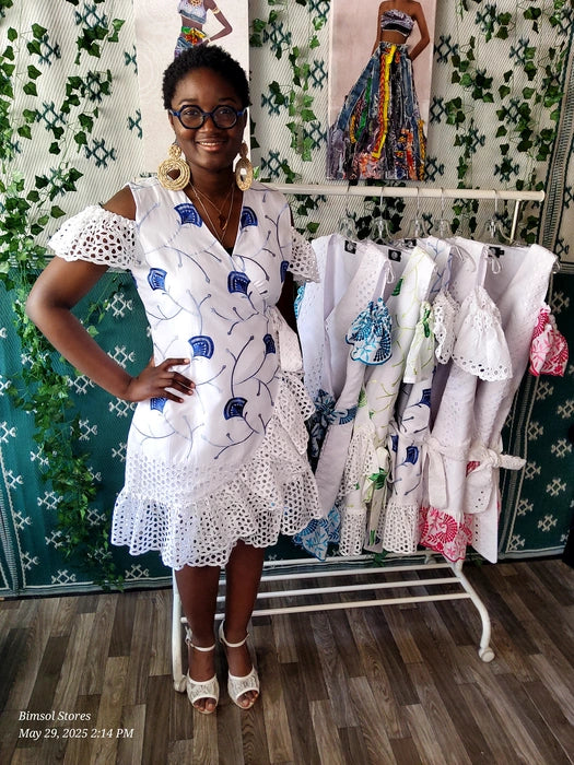 Elevate your wardrobe with the OREOLUWA WRAP LACE DRESS, a stunning white lace creation adorned with delicate 3D floral embellishments in a captivating array of colors. This sophisticated wrap silhouette flatters your figure while the intricate lace texture and dimensional flower details ensure you make an unforgettable entrance at any occasion. Perfect for those who appreciate refined craftsmanship and timeless elegance.