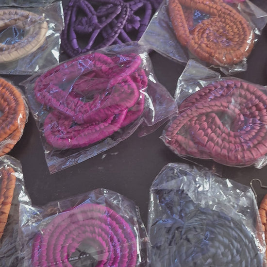 Add a splash of vibrant culture to your look with these playful raffia basket earrings. Handmade in Nigeria, each dangle earring showcases unique craftsmanship and natural texture, making them the perfect statement accessory to brighten any outfit. Lightweight and lively, they bring fun and flair wherever you go.
